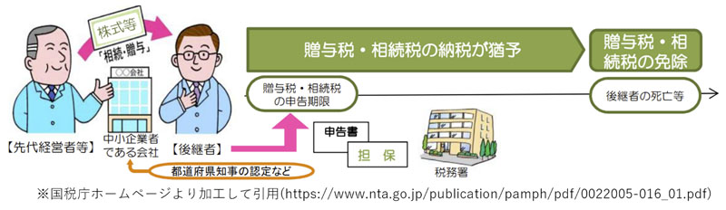 本制度は親族以外の後継者でも適用されますが、将来的に後継者の次の世代が継承した際に、先代の相続税や贈与税が免除になるというもので、それまでは納税を猶予されている状態です。